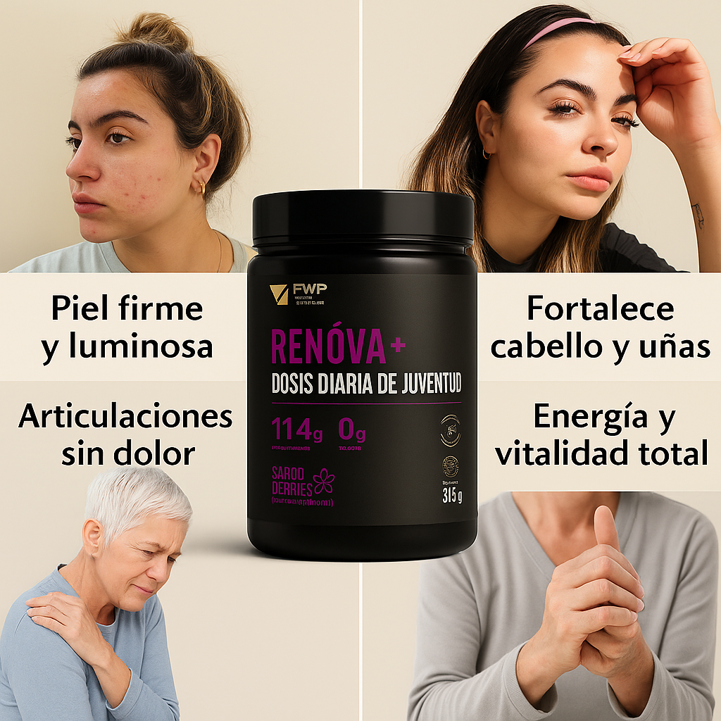 Al consumir Colágeno Renova FWP de forma constante, aportas aminoácidos clave que ayudan a mantener la piel y los tejidos. Su formato hidrolizado se absorbe fácilmente. Solo intégralo a tu rutina diaria y deja que el hábito haga el resto.